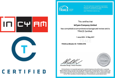 inCyam Co. Ltd., an in-group of BE Petrothai Group, a business of distribution and import oil and gas and petrochemical industry machines, has been certified by Trace International organization of being an international anti-bribery standard and transparency in international commercial transactions.